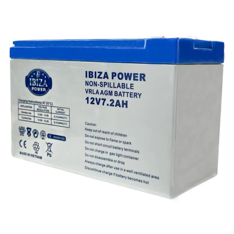 باتری ۱۲ ولت ۷.۲ آمپر ایبیزا یک باتری دزدگیر وارداتی ساخت ویتنام است. یک باتری سیلد اسید سرب است که برای استفاده در سیستمهای دزدگیر اماکن طراحی شده است.